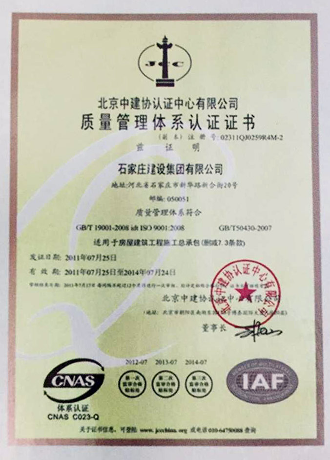 質(zhì)量管理體系認(rèn)證證書