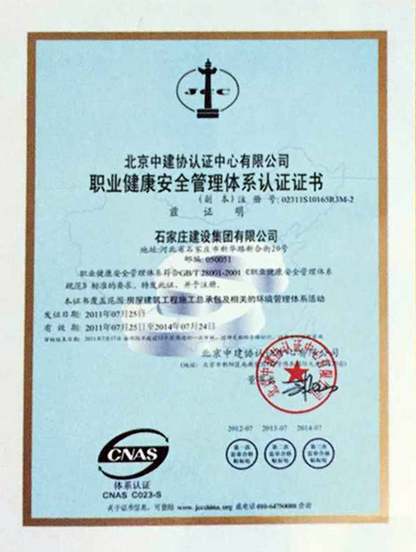 職業(yè)健康安全管理體系認(rèn)證證書