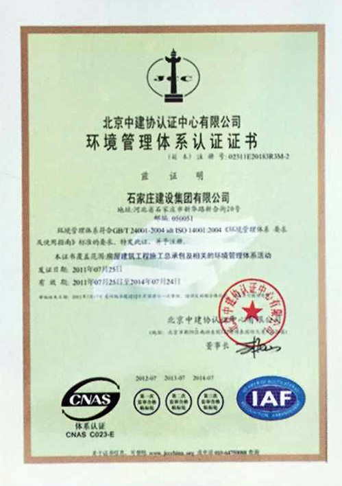 環(huán)境管理體系認(rèn)證證書